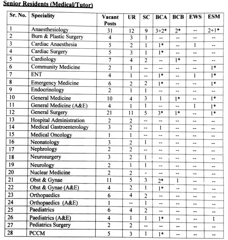 SENIOR RESIDENT (Medical):- MBBS from an Institution /University recognized by the MCI. MD/MS/DNB in the subject concerned. Candidates should be registered under the State/ Central Medical Registration Act.